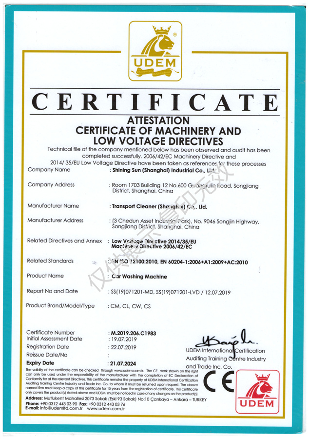 榮譽證書 車客林洗車機相關(guān)證書